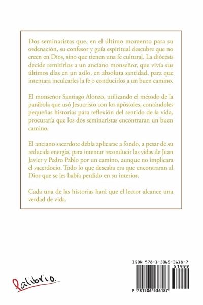 Dos seminaristas que, en el último momento para su ordenación, su confesor y guía espiritual descubre que no creen en Dios, sino que tienen una fe cultural. La diócesis decide remitirlos a un anciano monseñor, que vivía sus últimos días en un asilo, en absoluta santidad, para que intentara inculcarles la fe o conducirlos a un buen camino. El monseñor Santiago Alonzo, utilizando el método de la parábola que usó Jesucristo con los apóstoles, contándoles pequeñas historias para reflexión del sentido de la vida, procuraría que los dos seminaristas encontraran un buen camino. El anciano sacerdote debía aplicarse a fondo, a pesar de su reducida energía, para intentar reconducir las vidas de Juan Javier y Pedro Pablo por un camino, aunque no implicara el sacerdocio. Todo lo que deseaba era que encontraran al Dios que se les había perdido en su interior. Cada una de las historias hará que el lector alcance una verdad de vida.