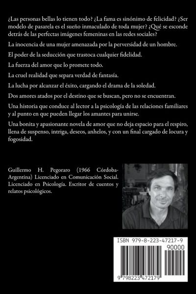 ¿Las personas bellas lo tienen todo? ¿La fama es sinónimo de felicidad? ¿Ser modelo de pasarela es el sueño inmaculado de toda mujer? ¿Qué se esconde detrás de las perfectas imágenes femeninas en las redes sociales? La inocencia de una mujer amenazada por la perversidad de un hombre. El poder de la seducción que trastoca cualquier fidelidad. La fuerza del amor que lo promete todo. La cruel realidad que separa verdad de fantasía. La lucha por alcanzar el éxito, cargando el drama de la soledad. Dos amores atados por el destino que se buscan, pero no se encuentran. Una historia que conduce al lector a la psicología de las relaciones familiares y al punto en que pueden llegar los amantes para unirse. Una bonita y apasionante novela de amor que no deja espacio para el respiro, llena de suspenso, intriga, deseos, anhelos, y con un final cargado de locura y fogosidad.