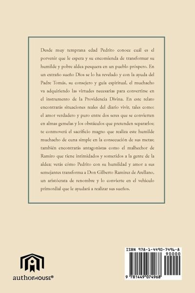 Este libro trata sobre un humilde muchacho hijo de un pescador que tiene el sueño en convertirse en ingeniero civil para transformar su humilde y pobre aldea en un pueblo de renombre. Este relato tiene su origen a mediados del siglo diecisiete cuando mi isla hermosa de Puerto Rico era una colonia de España. Para aquel entonces no era fácil conseguir un titulo profesional, ya que solamente las personas adineradas eran los únicos que podían viajar para España y otras partes de Europa para estudiar en las prestigiosas universidades del Viejo Mundo. En cambio, Pedrito con sus esperanzas y sacrificios empieza su camino para lograr sus metas poco a poco y con perseverancia y Fe en Dios puede viajar a España para estudiar en la Universidad de Madrid. Este relato está repleto de intrigas, y conflictos reales. Te conmoverá la curiosidad de Pedrito y su inocencia y talvez, al leer esta hermosa historia te acordarás de tu niñez y de tus propias vivencias. Este relato te mantendrá en expectativa y tu deseo de continuar leyendo, pues contiene mucho suspenso. La narrativa de varias situaciones simultáneamente te robaran la atención y permitirán que te hagas participe en tratar de adivinar qué pasará luego. Sé muy bien que disfrutarás leer esta hermosa historia, del mismo modo que yo lo he hecho escribiéndola.