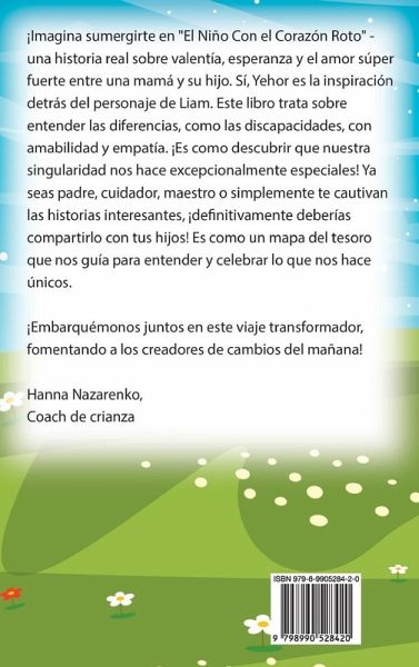 If you want to teach your child to accept himself and others as they are, then this book about disability and diversity will be your best choice. It will help your little ones to respect all the differences that make us unique. In this kids' book, our little hero, Liam, will show your children that we are all different in many ways and everyone is unique-which is great! He learns to navigate life's challenges while discovering the power of friendship and self-belief. This book will help your children:to accept and celebrate uniqueness to be kind and understanding to those who are different to love themselves the way they are to boost self-confidence to find strength in vulnerability to foster resilience and courage This social emotional book for kids by Hanna Nazarenko, a certified coach with a Yale background, is a true story about her son Yehor, who has faced countless challenges, including multiple open heart surgeries and living with a pacemaker. He is the boy behind Liam's character. This heartfelt story, "The Boy With the Broken Heart," invites you to ask: "How would I feel if I were in their place?". It's a must-read for parents, caregivers, and teachers looking for motivational books for kids. Ideal for preschoolers aged 3-5 and older children aged 6-10, this book offers valuable lessons in social emotional development and resilience-building. So, don't wait, add this amazing book to your cart now and ENJOY!