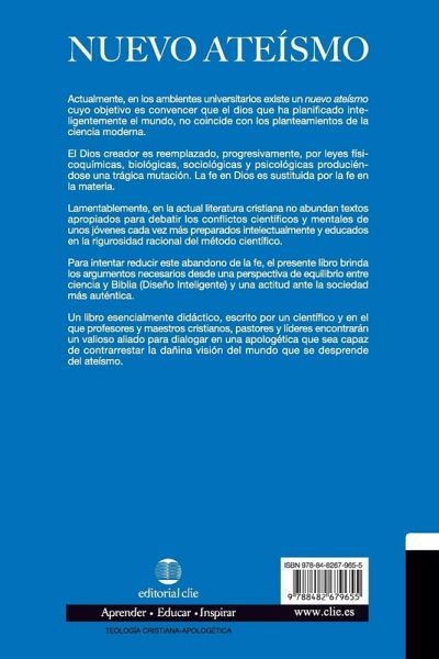 En el Nuevo Ate¿¿smo se habla del movimiento intelectual que prolifera hoy en los ambientes universitarios, en el que se cambia err¿¿neamente la F¿¿ en Dios por la fe en la materia. Este libro es una respuesta desde la ciencia, la raz¿¿n y la fe que analiza un importante tema actual desde el punto de vista de la biolog¿¿a, la teolog¿¿a y la fe. El autor Antonio Cruz (pastor, bi¿¿logo, catedr¿¿tico, con m¿¿ltiples publicaciones cient¿¿ficas y teol¿¿gicas prol¿¿ficas) examina las diferencias y la relaci¿¿n que existe entre la teolog¿¿a y la ciencia. El expone como ante el esp¿¿ritu cient¿¿fico del hombre, Dios sigue present¿¿ndose como respuesta a la pregunta humana acerca la complejidad de la vida y de su origen, entendi¿¿ndose la vida como una estructura biol¿¿gica con un dise¿¿o real y perfecto. Incluye: Contenido teol¿¿gico y cient¿¿fico por un experto en ambas materias. Tem¿¿tica controversial y compleja. Orden y secuencia. Tipograf¿¿a adecuada para una lectura agradable. New Atheism In New Atheism the writer shares about this intellectual movement that proliferates today in university environments, in which Faith in God is erroneously exchanged for faith in things. This book is an answer elaborated from science, reason, and faith that analyzes an important current topic from the point of view of biology, theology, and faith. The author Antonio Cruz (pastor, biologist, professor, with multiple prolific scientific and theological publications) examines the differences and the relationship that exists between theology and science. He exposes how in view of the scientific spirit of man, God continues to appear as an answer to the human question about the complexity of life and its origin, understanding life as a biological structure with a real and perfect design. It includes: Theological and scientific content by an expert in both subjects. Addresses a controversial and complex subject. Order and sequence. Suitable typography for a pleasant reading.