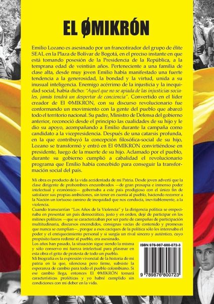 Emilio Lozano es asesinado por un francotirador del grupo de élite SEAL en la Plaza de Bolívar de Bogotá, en el preciso instante en que está tomando posesión de la Presidencia de la República, a la temprana edad de veintiún años. Perteneciente a una familia de clase alta, desde muy joven Emilio había manifestado una fuerte tendencia a la generosidad, la bondad y la virtud, unida a su inusual inteligencia. Enemigo acérrimo de la injusticia y la inequidad social, había dicho: "Aquel que no se apiada de las injusticias sociales, jamás tendrá un despertar de conciencia". Convertido en el líder creador de El ¿MIKRON, con su discurso revolucionario fue conformando un movimiento con la gente del pueblo que abarcó todo el territorio nacional. Su padre, Ministro de Defensa del gobierno anterior, reconoció desde el principio las cualidades de su hijo y le dio su apoyo, acompañando a Emilio durante la campaña como candidato a la vicepresidencia. Después de una catarsis profunda, en la que contribuyó la concepción filosófica-social de su hijo, Lozano se transformó y entró en El ¿MIKRON convirtiéndose en presidente, luego de la muerte de su hijo. Aclamado por el pueblo, durante su gobierno cumplió a cabalidad el revolucionario programa que Emilio había concebido para conseguir la transformación social del país.