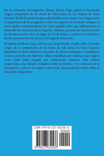 En su exhaustiva investigación, Moisés Morán Vega explora el fascinante origen competitivo de los botes de Vela Latina en Las Palmas de Gran Canaria. Desde los primeros pasos del hombre en los mares, ríos y lagos, hasta el surgimiento de la navegación a vela y su impacto en el mundo antiguo, el autor analiza minuciosamente los cinco pueblos clave que influenciaron el desarrollo de esta forma de navegación. Además, presenta de manera sucinta las diversas teorías sobre el origen de la vela latina y examina la evolución y declive posterior de esta técnica a lo largo de la historia. El trabajo de Morán Vega culmina con un profundo estudio sobre el posible origen de la competición de los botes de vela latina en Gran Canaria. Basándose en datos históricos extraídos de fuentes primarias y secundarias, el autor presenta una hipótesis sólida respaldada por evidencia que sugiere cómo pudo haber surgido esta competición marinera. Este análisis proporciona una mirada reveladora sobre la historia y la evolución de la navegación a vela en esta región, ofreciendo una perspectiva única sobre su desarrollo competitivo.