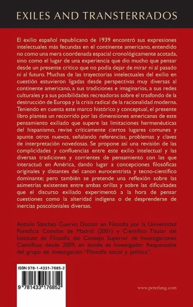 El exilio español republicano de 1939 encontró sus expresiones intelectuales más fecundas en el continente americano, entendido no como una mera coordenada espacial cronológicamente acotada, sino como el lugar de una experiencia que dio mucho que pensar desde un presente crítico que no podía dejar de mirar ni al pasado ni al futuro. Muchas de las trayectorias intelectuales del exilio en cuestión estuvieron ligadas desde perspectivas muy diversas al continente americano, a sus tradiciones e imaginarios, a sus redes culturales y a sus posibilidades recreadoras sobre el trasfondo de la destrucción de Europa y la crisis radical de la racionalidad moderna. Teniendo en cuenta este marco histórico y conceptual, el presente libro plantea un recorrido por las dimensiones americanas de este pensamiento exiliado que supere las limitaciones hermenéuticas del hispanismo, revise críticamente ciertos lugares comunes y apunte otros nuevos, señalando referencias, problemas y claves de interpretación novedosas. Se propone así una revisión de las complicidades y confluencias entre este exilio intelectual y las diversas tradiciones y corrientes de pensamiento con las que interactuó en América, dando lugar a concepciones filosóficas originales y distantes del canon eurocentrista y tecno-científico dominante; pero también se pretende una reflexión sobre las asimetrías existentes entre ambas orillas y sobre las dificultades que el discurso exiliado experimentó a la hora de pensar cuestiones como la alteridad indígena o de desprenderse de inercias poscoloniales diversas.