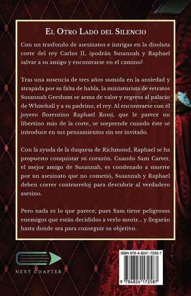 Con un trasfondo de asesinatos e intrigas en la disoluta corte del rey Carlos II, ¿podrán Susannah y Raphael salvar a su amigo y encontrarse en el camino? Tras una ausencia de tres años sumida en la ansiedad y atrapada por su falta de habla, la miniaturista de retratos Susannah Gresham se arma de valor y regresa al palacio de Whitehall y a su padrino, el rey. Al encontrarse con el joyero florentino Raphael Rossi, que le parece un libertino más de la corte, se sorprende cuando éste se introduce en sus pensamientos sin ser invitado. Con la ayuda de la duquesa de Richmond, Raphael se ha propuesto conquistar su corazón. Cuando Sam Carter, el mejor amigo de Susannah, es condenado a muerte por un asesinato que no cometió, Susannah y Raphael deben correr contrarreloj para descubrir al verdadero asesino. Pero nada es lo que parece, pues Sam tiene peligrosos enemigos que están decididos a verlo morir... y llegarán hasta donde sea para conseguir su objetivo.