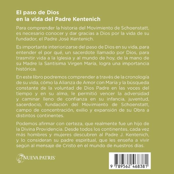 Para comprender la historia del Movimiento de Schoenstatt, es necesario conocer y dar gracias a Dios por la vida de su fundador, el Padre José Kentenich. Es importante interiorizarse del paso de Dios en su vida, para entender el por qué, un sacerdote llamado por Dios, para trasmitir vida a la Iglesia y al mundo de hoy, de la mano de su Madre la Santísima Virgen María, logra una importancia histórica. En este libro podremos comprender a través de la cronología de su vida, cómo la Alianza de Amor con María y la búsqueda constante de la voluntad de Dios Padre en las voces del tiempo y en su alma, le permitió vencer la adversidad y caminar lleno de confianza en su infancia, juventud, sacerdocio, fundación del Movimiento de Schoenstatt, campo de concentración, exilio y expansión de su Obra a distintos continentes. Podemos afirmar con certeza, que realmente fue un hijo de la Divina Providencia. Desde todos los continentes, cada vez más hombres y mujeres descubren al Padre J. Kentenich, y lo consideran su padre espiritual, que les enseña a vivir según al mensaje de Cristo en el mundo de nuestros días.