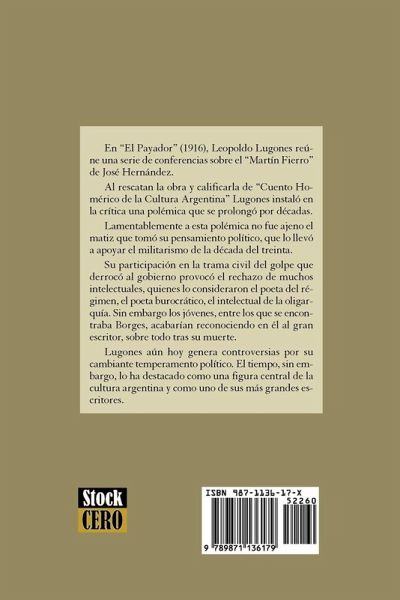 Leopoldo Lugones El payador: the ultimate Martin Fierro textbook Leopoldo Lugones career as a poet and man of letters was undoubtedly hampered by his everchanging, but always passionate and sometimes questionable, political views. First an anarchist, then a socialist, finally a fascist, Lugones was a friend of Rubén Darío and the outstanding modernista poet of Argentina. His early volumes ( Las montañas de oro [the golden mountains] (1897), Los crepúsculos del jardín [twilights in the garden] (1905), and El lunario sentimental [sentimental almanac] (1909) were influenced by Victor Hugo and Walt Whitman. Later he turned to realism and satire, emphasizing epic and patriotic themes. In his novels and short stories, Lugones ranges from naturalistic explorations of Argentine history ( La guerra gaucha, 1905) to literature of the fantastic (Las fuerzas extrañas, 1906). In 1913, just arived from Europe, Lugones was invited to give a series of lectures in the Odeon theatre of Buenos Aires. The six lectures were attended by the most important people of the times, including then president Roque Sáenz Peña and most of his cabinet. Three years later Lugones published El Payador, as a recopilation of his lectures. The main topic of the book is "Martín Fierro", and it sets the basis of the still on going discussion about whether Martin Fierro or Don Segundo Sombra should be considered the Argentine gaucho role model. Our edition follows the 1916 original book , but comprises no less than 260 notes, adding lexicographic ones to the author's own reflections. It also includes the musical scores that underlined the fifth conference, and quite soon we will have free downloadable recordings available in our website. We believe that this annotated edition constitutes an important reading for all students of Southamerican literature.