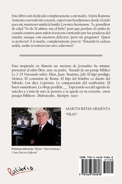Este libro está dedicado completamente a mi madre. María Ramona Armenta con todo mi corazón, espero sus bendiciones desde el cielo para así, mantener unida la famila. Los once hermanos; Ya, pasaditos de edad "Yo de 51 añitos, soy el bebe" pero que perdure el cariño de cuando éramos unos niños traviezos corriendo por las praderas del rancho; aunque con nuestros defectos, !pero me pregunto! Quien es perfecto? A tí madre, completamente para ti. "Estando la cadena unida, nadie reventará tus once eslavones".