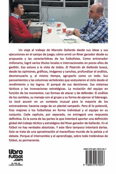 Un viaje al trabajo de Marcelo Gallardo desde sus ideas y sus ejecuciones en el campo de juego; cómo armó un River ganador desde su propuesta y las características de los futbolistas. Como entrenador millonario, logró varios títulos locales e internacionales en pocos años de gestión. Eso estuvo a la vista de todos. El Pizarrón de Gallardo busca, desde las opiniones, gráficos, imágenes y canchas, profundizar el análisis, desmenuzarlo y, al mismo tiempo, agruparlo como un todo. Sus pensamientos y las columnas vertebrales que sostuvieron el ciclo desde el rendimiento y los logros. El porqué de sus decisiones. Sus sistemas tácticos y las innovaciones estratégicas. La mutación del equipo en función de los momentos. Las formas de atacar y de defender. El análisis de los cambios, su manejo con el grupo y su forma de ejercer el liderazgo. Le tocó asumir en un contexto inusual para la mayoría de los entrenadores: hacerse cargo de un plantel campeón. Pero él lo potenció, hizo mejores a los futbolistas en forma individual y al equipo en su conjunto. Cada capítulo, por separado, no entregará una respuesta definitiva. Es la suma de las partes la que intentará aportar una definición global del trabajo táctico y estratégico del River ganador de Gallardo. En el fútbol no hay verdades absolutas. Y este libro tampoco intentará darlas. Solo se trata de una aproximación al maravilloso mundo de la pelota y el debate. Porque el intercambio y el aprendizaje, sobre todo tratándose de fútbol, es permanente.