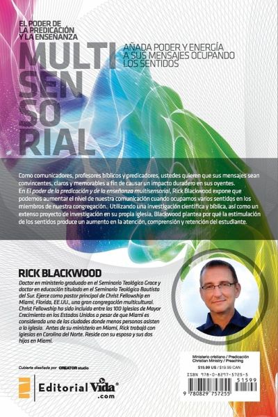 Rick Blackwood expone que podemos aumentar el nivel de nuestra comunicación cuando ocupamos varios sentidos en los miembros de nuestra congregación. Utilizando una investigación científica y bíblica, así como un extenso proyecto de investigación en su propia iglesia, Blackwood plantea por qué la estimulación de los sentidos produce un aumento en la atención, comprensión y retención del estudiante.
