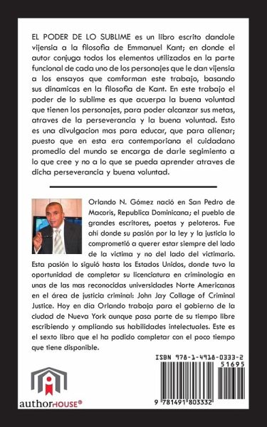 EL PODER DE LO SUBLIME es un libro escrito dandole vijensia a la filosia de Emmanuel Kant; en donde el autor conjuga todos los elementos utilizados en la parte funcional en cada uno de los personajes que le dan vijensia a los ensayos que comforman este trabajo, basando sus dinamicas en la filosofia de Kant. En este trabajo el poder de lo sublime es que acuerpa la buena voluntad que tienen los personajes, para poder alcanzar sus metas, atraves de la perseverancia y la buena voluntad. Esto es una divulgacion mas para educar, que para alienar; puesto que en esta era contemporiana el cuidadano promedio del mundo de encarga de darle segimiento a lo que cree y no a lo que se pueda aprender atraves de dicha perseverancia y buena voluntad.