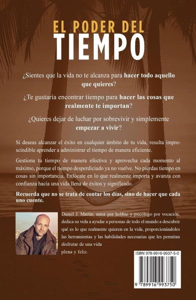 ¿Sientes que la vida no te alcanza para hacer todo aquello que quieres? ¿Te gustaría encontrar tiempo para hacer las cosas que realmente te importan? ¿Quieres dejar de luchar por sobrevivir y simplemente empezar a vivir? La gestión del tiempo es una habilidad fundamental que te permitirá disfrutar de una vida plena y feliz. Gracias a 7 reglas sencillas y probadas descubrirás cómo establecer metas, priorizar tareas, delegar responsabilidades, planificar con anticipación, aprender a decir "no", acabar con la procrastinación, maximizar tu productividad, reducir el estrés, ... y en definitiva, encontrar un equilibrio entre tu vida personal y profesional. Si deseas alcanzar el éxito en cualquier ámbito de tu vida, resulta imprescindible aprender a administrar el tiempo de manera eficiente. Este libro es para ti si: Tienes la sensación de hacer mucho, pero avanzar poco. Te sientes desbordado por todas las tareas que tienes pendientes. Te gustaría vencer la procrastinación y lograr más en menos tiempo. Te cuesta decir "no" a las solicitudes de los demás. Sientes que te pasas la vida en modo multitarea. Quieres aprender a delegar tareas y responsabilidades. Te cuesta empezar o completar tareas importantes. Tienes dificultades para dormir y descansar suficientemente. Te gustaría ser más productivo y disfrutar de una vida sin estrés. Te gustaría aprender a establecer y alcanzar tus metas. Quieres hallar tiempo para hacer lo que realmente importa. Recuerda que no se trata de contar los días, sino de hacer que cada uno cuente. Gestiona tu tiempo de manera efectiva y aprovecha cada momento al máximo, porque el tiempo desperdiciado ya no vuelve. No pierdas tiempo en cosas sin importancia. Enfócate en lo que realmente importa y avanza con confianza hacia una vida llena de éxitos y significado. ¡No esperes a mañana para cambiar tu vida y hazte con tu copia HOY!