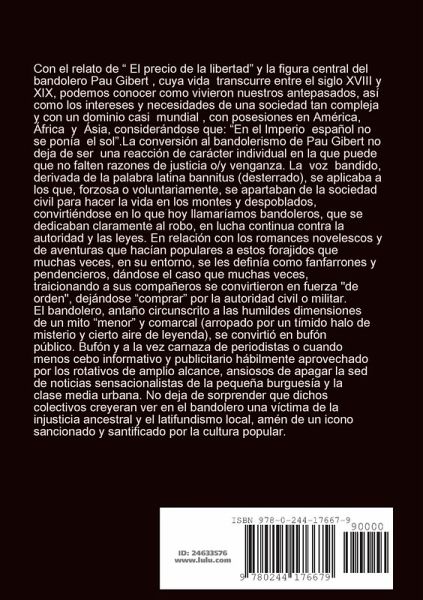 Con el relato del "Precio de la libertad" y la figura central del bandolero Pau Gibert , cuya vida transcurre entre el siglo XVIII y XIX, podemos conocer como vivieron nuestros antepasados, así como los intereses y necesidades de una sociedad tan compleja y con un dominio casi mundial , con posesiones en América, África y Ásia, considerándose que: "En el Imperio español no se ponía el sol".El bandolero, antaño circunscrito a las humildes dimensiones de un mito "menor" y comarcal (arropado por un tímido halo de misterio y cierto aire de leyenda), se convirtió en bufón público. Bufón y a la vez carnaza de periodistas o cuando menos cebo informativo y publicitario hábilmente aprovechado por los rotativos de amplio alcance, ansiosos de apagar la sed de noticias sensacionalistas de la pequeña burguesía y la clase media urbana.