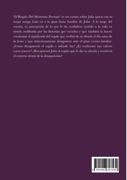 This Spanish short story is about Julia who with her best friend Lola goes to Julia's big family event, where her perception of what gives true meaning to life is shaped by the stories she hears and which also make her question the meaning of the gift she received from her grandmother the day before the party, which mysteriously disappears before the big family event. How did the gift disappear and where did it go? Will Julia recover the gift and solve the mystery behind its disappearance? This fictional short story is for anyone who would like to read in Spanish, while enjoying a heartwarming tale about the special gifts that enrich life, while engaging in the fun of solving riveting mysteries.