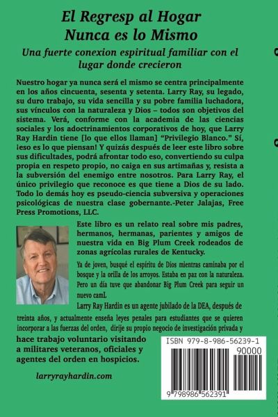 Nuestro hogar ya nunca será el mismo se centra principalmente en los años cincuenta, sesenta y setenta. Larry Ray, su legado, su duro trabajo, su vida sencilla y su pobre familia luchadora, sus vínculos con la naturaleza y Dios - todos son objetivos del sistema. Verá, conforme con la academia de las ciencias sociales y los adoctrinamientos corporativos de hoy, que Larry Ray Hardin tiene [lo que ellos llaman] "Privilegio Blanco." Sí, ¡eso es lo que piensan! Y quizás después de leer este libro sobre sus dificultades, podrá afrontar todo eso, convertiendo su culpa propia en respeto propio, no caiga en sus artimañas y, resista a la subversión del enemigo entre nosotros. Para Larry Ray, el único privilegio que reconoce es que tiene a Dios de su lado. Todo lo demás hoy es pseudo-ciencia subversiva y operaciones psicológicas de nuestra clase gobernante.-Peter Jalajas, Free Press Promotions, LLC. Este libro es un relato real sobre mis padres, hermanos, hermanas, parientes y amigos de nuestra vida en Big Plum Creek rodeados de zonas agrícolas rurales de Kentucky. Ya de joven, busqué el espíritu de Dios mientras caminaba por el bosque y la orilla de los arroyos. Estaba en paz con la naturaleza. Pero un día tuve que abandonar Big Plum Creek para seguir un nuevo camL Larry Ray Hardin es un agente jubilado de la DEA, después de
