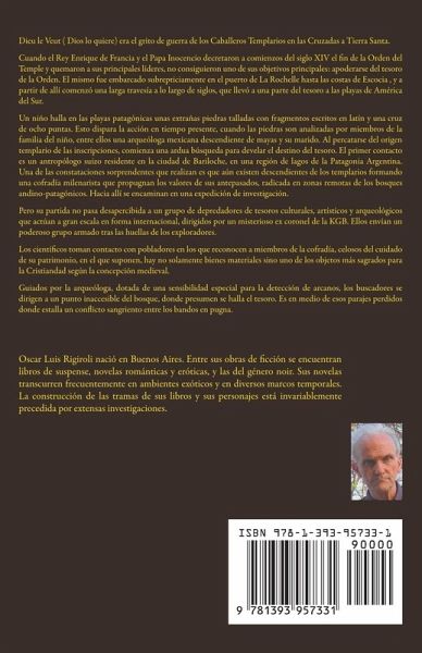 Dieu le Veut ( Dios lo quiere) era el grito de guerra de los Caballeros Templarios en las Cruzadas a Tierra Santa. Cuando el Rey Enrique de Francia y el Papa Inocencio decretaron a comienzos del siglo XIV el fin de la Orden del Temple y quemaron a sus principales líderes, no consiguieron uno de sus objetivos principales: apoderarse del tesoro de la Orden. El mismo fue embarcado subrepticiamente en el puerto de La Rochelle hasta las costas de Escocia , y a partir de allí comenzó una larga travesía a lo largo de siglos, que llevó a una parte del tesoro a las playas de América del Sur. Un niño halla en las playas patagónicas unas extrañas piedras talladas con fragmentos escritos en latín y una cruz de ocho puntas. Esto dispara la acción en tiempo presente, cuando las piedras son analizadas por miembros de la familia del niño, entre ellos una arqueóloga mexicana descendiente de mayas y su marido. Al percatarse del origen templario de las inscripciones, comienza una ardua búsqueda para develar el destino del tesoro. El primer contacto es un antropólogo suizo residente en la ciudad de Bariloche, en una región de lagos de la Patagonia Argentina. Una de las constataciones sorprendentes que realizan es que aún existen descendientes de los templarios formando una cofradía milenarista que propugnan los valores de sus antepasados, radicada en zonas remotas de los bosques andino-patagónicos. Hacia allí se encaminan en una expedición de investigación. Pero su partida no pasa desapercibida a un grupo de depredadores de tesoros culturales, artísticos y arqueológicos que actúan a gran escala en forma internacional, dirigidos por un misterioso ex coronel de la KGB. Ellos envían un poderoso grupo armado tras las huellas de los exploradores. Los científicos toman contacto con pobladores en los que reconocen a miembros de la cofradía, celosos del cuidado de su patrimonio, en el que suponen, hay no solamente bienes materiales sino uno de los objetos más sagrados para la Cristiandad según la concepción medieval. Guiados por la arqueóloga, dotada de una sensibilidad especial para la detección de arcanos, los buscadores se dirigen a un punto inaccesible del bosque, donde presumen se halla el tesoro. Es en medio de esos parajes perdidos donde estalla un conflicto sangriento entre los bandos en pugna.