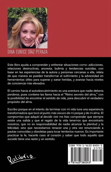 Este libro ayuda a comprender y enfrentar situaciones como: adicciones, relaciones destructivas, anorexia, bulimia y tendencias suicidas, con base en las experiencias de la autora y personas cercanas a ella, relata de que manera se pueden transformar el sufrimiento y la adversidad en herramientas útiles para superar y sanar heridas, y avanzar hacia niveles de conciencia más elevados. El camino hacia el autodescubrimiento es una aventura que nadie debería perderse, pues contiene las llaves hacia el "Reino secreto del alma," con la posibilidad de encontrar el sentido de vida, para descubrir el verdadero propósito del alma. Escribo porque en el intento de terminar con mi vida tuve una experiencia transformadora que tocó el punto más oscuro de mi psique y de mi alma. El compromiso que adquirí al decidir vivir me hizo comprender que siempre existe una salida y que el regalo de la vida tenemos que encontrarlo nosotros, que no es responsabilidad de nadie alcanzar la plenitud y la felicidad, sino que necesitamos renacer una y otra vez renunciando a pautas conocidas y obsoletas para tocar territorios nuevos. Es importante practicar la fe, hacerle caso al corazón y saber que todo aquello que sucede tiene una razón y un sentido.