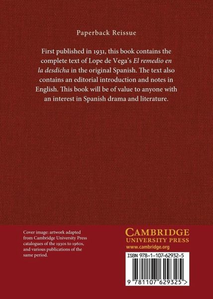 First published in 1931, this book contains the complete text of Lope de Vega's El remedio en la desdicha in the original Spanish. The text also contains an editorial introduction and notes in English. This book will be of value to anyone with an interest in Spanish drama and literature.