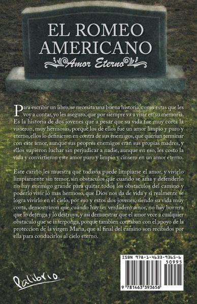 Para escribir un libro, se necesita una buena historia, como estas que les voy a contar, yo les aseguro, que por siempre va a vivir en su memoria. Es la historia de dos jovenes que a pesar que su vida fue muy corta la vivieron, muy hermosas, porque los de ellos fue un amor limpio y puro y eterno, ellos lo definieron en contra de sus enemigos, que querian terminar con este amor, aunque sus peopres enemigos eran sus propias madres, y ellos supieron luchar sin perjudicar a nadie, aunque en eso, les costo la vida y convirtieron este amor puro y limpio y cinsero en un amor eterno. Este cariño les muestra que todavia puede limpiarse el amor, y vivirlo limpiamente sin temor, sin obstaculos que cuando se ama y defenderlo no hay enemigo grande para quitar todos los obstaculos del camino y poderlo vivir lo mas hermoso, que Dios nos da de vida y si realmente se logra vivirlo en el cielo, por eso y estos dos jovenes, siendo su vida muy corta, demostraron que cuando hay un verdadero amor, no hay borrera que lo detenga y lo destruya, y asi demuestrar que el amor vece a cualquier obstaculo que se interponga, porque tambien contaban con el apoyo de la proteccion de la virgen Maria, que al final del camino son recibidos por ella para conducirlos al cielo eterno.