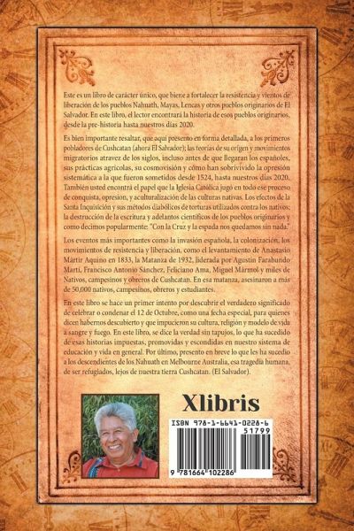 Este es un libro de carácter único, que biene a fortalecer la resistencia y vientos de liberación de los pueblos Nahuas, Mayas, Lencas y otros pueblos originarios de El Salvador. En este libro, el lector encontrará la historia de esos pueblos originarios, desde la pre-historia hasta nuestros días 2020. Es bien importante resaltar, que aquí presento en forma detallada, quienes fueron los primeros pobladores de Cushcatan (ahora El Salvador); las teorías de su orígen y movimientos migratorios atravez de los siglos, incluso antes de que llegaran los españoles, sus prácticas agrícolas, su cosmovisión y cómo han sobrivivido la opresión sistemática a la que fueron sometidos desde 1524, hasta nuestros días 2020. También usted encontrá el papel que la Iglesia Católica jugó en todo ese proceso de conquista, opresion, y aculturalización de las culturas nativas. Los efectos de la Santa Inquisición y sus métodos diabólicos de torturas utilizados contra los nativos; la destrucción de la escritura y adelantos científicos de los pueblos originarios y como decimos popularmente: "Con la Cruz y la espada nos quedamos sin nada." Los eventos más importantes como la invasión española, la colonización, los movimientos de resistencia y liberación, como el levantamiento de Anastasio Mártir Aquino en 1833, la Matanza de 1932, liderada por Agustin Farabundo Martí, Francisco Antonio Sánchez, Feliciano Ama, Miguel Mármol y miles de Nativos, campesinos y obreros de Cushcatan. En esa matanza, asesinaron a más de 50,000 nativos, campesinos, obreros y estudiantes. En este libro se hace un primer intento por descubrir el verdadero significado de celebrar o condenar el 12 de Octubre, como una fecha especial, para quienes dicen habernos descubierto y que impucieron su cultura, religión y modelo de vida a sangre y fuego. En este libro, se dice la verdad sin tapujos, lo que ha sucedido de esas historias impuestas, promovidas y escondidas en nuestro sistema de educación y vida en general. Por último, presento en breve lo que les ha sucedio a los descendientes de los Nahuas en Melbourne Australia, esa tragedia humana, de ser refugiados, lejos de nuestra tierra Cushcatan. (El Salvador).