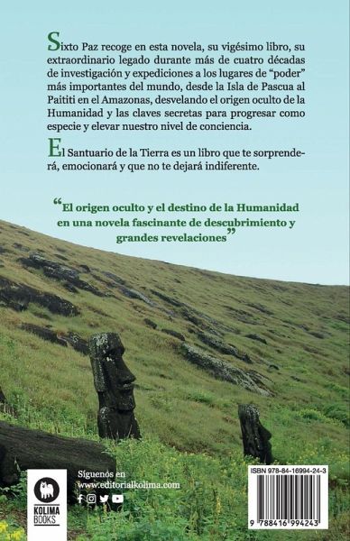 Sixto Paz recoge en este libro, su vigésimo, en forma novelada su legado más importante como expedicionario a los lugares de "poder" más importantes del mundo, desde la Isla de Pascua al Paititi en el Amazonas, desvelando el origen oculto de la Humanidad y las claves secretas para progresar como especie y elevar nuestro nivel de conciencia.