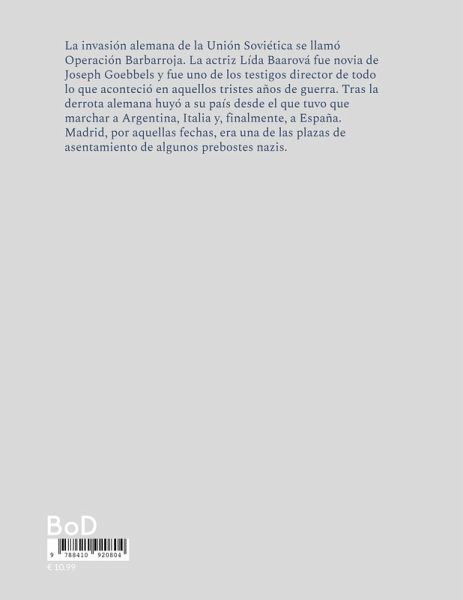 La invasión alemana de la Unión Soviética se llamó Operación Barbarroja. La actriz Lída Baarová fue novia de Joseph Goebbels y fue uno de los testigos director de todo lo que aconteció en aquellos tristes años de guerra. Tras la derrota alemana huyó a su país desde el que tuvo que marchar a Argentina, Italia y, finalmente, a España. Madrid, por aquellas fechas, era una de las plazas de asentamiento de algunos prebostes nazis.