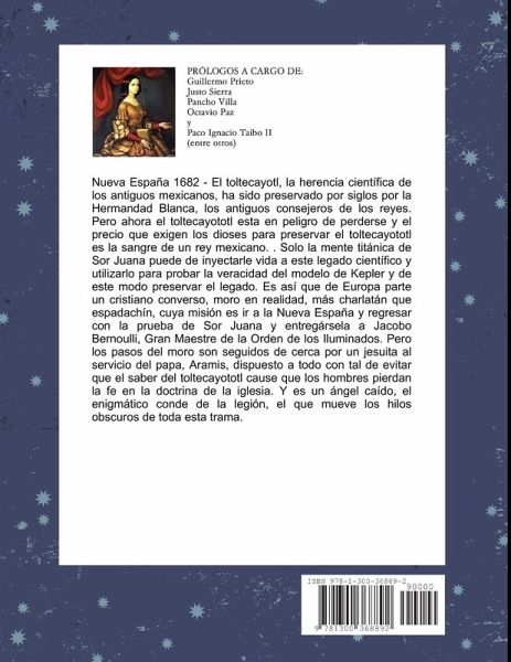 Nueva España 1682 - El toltecayotl, la herencia científica de los antiguos mexicanos, ha sido preservado por siglos por la Hermandad Blanca, los antiguos consejeros de los reyes. Pero ahora el toltecayototl esta en peligro de perderse y el precio que exigen los dioses para preservar el toltecayototl es la sangre de un rey mexicano. Solo la mente titánica de Sor Juana puede de inyectarle vida a este legado científico y utilizarlo para probar la veracidad del modelo de Kepler y de este modo preservar el legado.