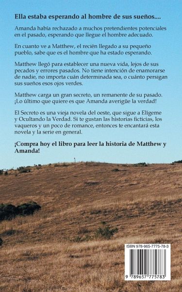 Ella estaba esperando al hombre de sus sueños.... Amanda había rechazado a muchos pretendientes potenciales en el pasado, esperando que llegue el hombre adecuado. En cuanto ve a Matthew, el recién llegado a su pequeño pueblo, sabe que es el hombre que ha estado esperando. Matthew llegó para establecer una nueva vida, lejos de sus pecados y errores pasados. No tiene intención de enamorarse de nadie, no importa cuán determinada sea, o cuánto persigan sus sueños esos ojos verdes. Matthew carga un gran secreto, un remanente de su pasado. ¡Lo último que quiere es que Amanda averigüe la verdad! El Secreto es una vieja novela del oeste, que sigue a Elígeme y Ocultando la Verdad. Si te gustan las historias ficticias, los vaqueros y un poco de romance, entonces te encantará esta novela y la serie en general. ¡Compra hoy el libro para leer la historia de Matthew y Amanda!