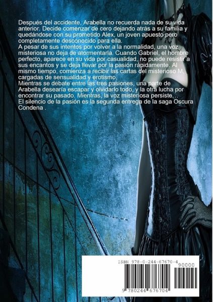 Despüs del accidente, Arabella no recuerda nada de su vida anterior. Decide comenzar de cero dejando atr¿s a su familia y qued¿ndose con su prometido Alex, un joven apuesto pero completamente desconocido para ella. A pesar de sus intentos por volver a la normalidad, una voz misteriosa no deja de atormentarla. Cuando Gabriel, el hombre perfecto, aparece en su vida por casualidad, no puede resistir a sus encantos y se deja llevar por la pasi-n r¿pidamente. Al mismo tiempo, comienza a recibir las cartas del misterioso M, cargadas de sensualidad y erotismo. Mientras se debate entre las tres pasiones, una parte de Arabella desear'a escapar y olvidarlo todo, y la otra lucha por encontrar su pasado. Mientras, la voz misteriosa persisteÉ El silencio de la pasi-n es la segunda entrega de la saga Oscura Condena .