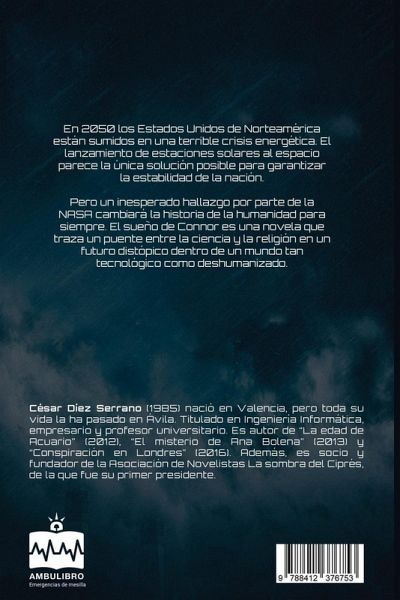 En 2050 los Estados Unidos de Norteamérica están sumidos en una terrible crisis energética. El lanzamiento de estaciones solares al espacio parece la única solución posible para garantizar la estabilidad de la nación. Pero un inesperado hallazgo por parte de la NASA cambiará la historia de la humanidad para siempre. El sueño de Connor es una novela que traza un puente entre la ciencia y la religión en un futuro distópico dentro de un mundo tan tecnológico como deshumanizado.