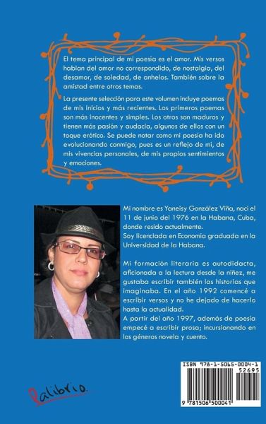 El tema principal de mi poesía es el amor. Mis versos hablan del amor no correspondido, de nostalgia, del desamor, de soledad, de anhelos. También sobre la amistad entre otros temas. La presente selección para este volumen incluye poemas de mis inicios y más recientes. Los primeros poemas son más inocentes y simples. Los otros son maduros y tienen más pasión y audacia, algunos de ellos con un toque erótico. Se puede notar como mi poesía ha ido evolucionando conmigo, pues es un reflejo de mí, de mis vivencias personales, de mis propios sentimientos y emociones.