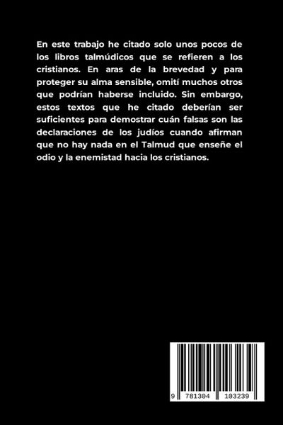 En este trabajo he citado solo unos pocos de los libros talmúdicos que se refieren a los cristianos. En aras de la brevedad y para proteger su alma sensible, omití muchos otros que podrían haberse incluido. Sin embargo, estos textos que he citado deberían ser suficientes para demostrar cuán falsas son las declaraciones de los judíos cuando afirman que no hay nada en el Talmud que enseñe el odio y la enemistad hacia los cristianos.