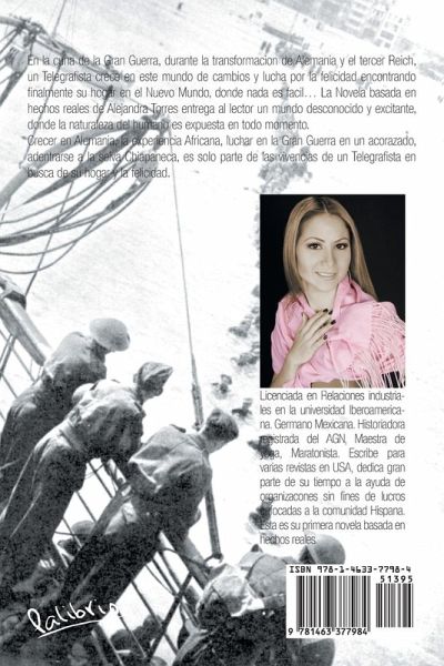 En la cuna de la Gran Guerra, durante la transformacion de Alemania y el tercer Reich, un Telegrafista crece en este mundo de cambios y lucha por la felicidad encontrando finalmente su hogar en el Nuevo Mundo, donde nada es facil... La Novela basada en hechos reales de Alejandra Torres entrega al lector un mundo desconocido y excitante, donde la naturaleza del humano es expuesta en todo momento. Crecer en Alemania, la experiencia Africana, luchar en la Gran Guerra en un acorazado, adentrarse a la selva Chiapaneca, es solo parte de las vivencias de un Telegrafista en busca de su hogar y la felicidad.