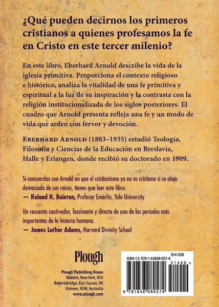Eberhard Arnold (1883-1935) estudió Teología, Filosofía y Ciencias de la Educación en Breslavia, Halle y Erlangen, donde recibió su doctorado en 1909. En 1920, alentado por el deseo de poner en práctica las demandas del sermón del monte, Eberhard y su esposa Emmy dieron la espalda a su Berlín de clase media, así como a una promisoria carrera de escritor y orador público, y se mudaron con sus hijos a Sannerz, una pequeña aldea alemana. Allí, junto con un puñado de buscadores inspirados en los primeros cristianos y con quienes compartían las mismas ideas, fundaron un movimiento comunitario que ahora se conoce como el Bruderhof.