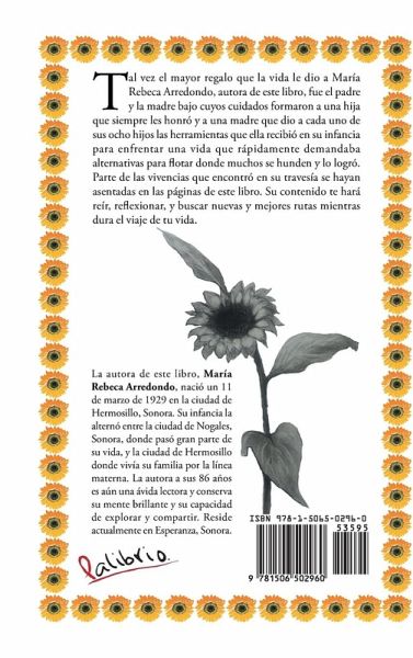 Tal vez el mayor regalo que la vida le dio a María Rebeca Arredondo, autora de este libro, fue el padre y la madre bajo cuyos cuidados formaron a una hija que siempre les honró y a una madre que dio a cada uno de sus ocho hijos las herramientas que ella recibió en su infancia para enfrentar una vida que rápidamente demandaba alternativas para flotar donde muchos se hunden y lo logró. Parte de las vivencias que encontró en su travesía se hayan asentadas en las páginas de este libro. Su contenido te hará reír, reflexionar, y buscar nuevas y mejores rutas mientras dura el viaje de tu vida.