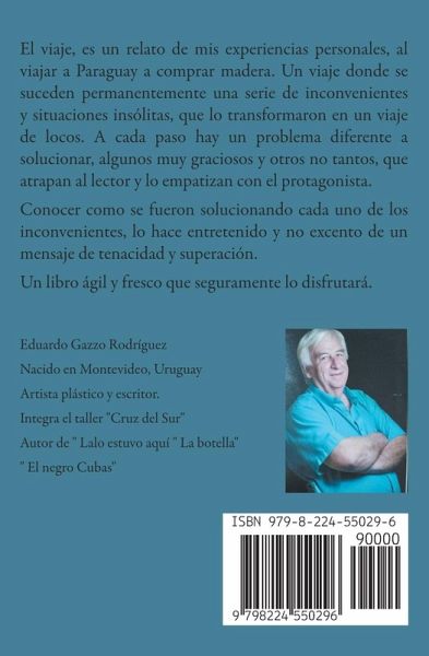 El viaje, es un relato de mis experiencias personales, al viajar a Paraguay a comprar madera. Un viaje donde se suceden permanentemente una serie de inconvenientes y situaciones insólitas, que lo transformaron en un viaje de locos. A cada paso hay un problema diferente a solucionar, algunos muy graciosos y otros no tantos, que atrapan al lector y lo empatizan con el protagonista. Conocer como se fueron solucionando cada uno de los inconvenientes, lo hace entretenido y no excento de un mensaje de tenacidad y superación. Un libro ágil y fresco que seguramente lo disfrutará.