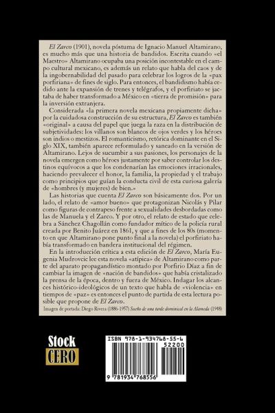 El Zarco by Ignacio Atamirano in a US printed edition with preliminary study and notes by Maria Eugenia Mudrovcic Ignacio Manuel Altamirano's posthumous novel, El Zarco (1901), is much more than a novel about bandits. Written amidst the «pax porfiriana», at the height of Altamirano's reputation within the cultural elite, the novel is a narrative that deals with the chaos and the banditry that prevailed in the 1860s to celebrate the insertion of Mexico into the international markets undertaken by Porfirio Díaz. Considered to be «the first Mexican novel» because of its carefully constructed structure, El Zarco is also "original" in its approach to race: green-eyed white characters are the villains, while the heroes are Indian or mestizos. What makes a heroe, however, is not a matter of race, but the strict adherence to honor, family and hard work, the «civil» values guiding the actions and the ethos of each and every good citizen or "hombre de bien" of Yautepec. The nineteenth century bourgeois obsession with "crime" emerges in El Zarco as the matrix of the two stories that end up being one: "crime" is the cause for the fear and «insecurity» that paralyze Yautepec middle classes as well as the reason for the glorification of the rural police. Altamirano presents the «good love» between Nicolas and Pilar as a counternarrative of the sexually undisciplined story of lust enacted by Manuela and el Zarco. But this narrative line seems to be, nonetheless, only a frame to celebrate Sanchez Chagollan as the heroic founding father of the police created by Benito Juárez in 1861 that later became an icon of the institutional order of the Diaz regime. In the study that introduces this edition, Maria Eugenia Mudrovcic reads the «unorthodoxies» of Altamirano's novel as part of the propaganda apparatus set by Porfirio Diaz in his effort to change the image of Mexico as a «bandit nation» that dominated the press at the time. Why Altamirano talks of «violence» in «times of peace», thus, becomes the starting-point for a reading of El Zarco that pays attention not so much to bandits but rather to the police that was created as the only way to combat them.