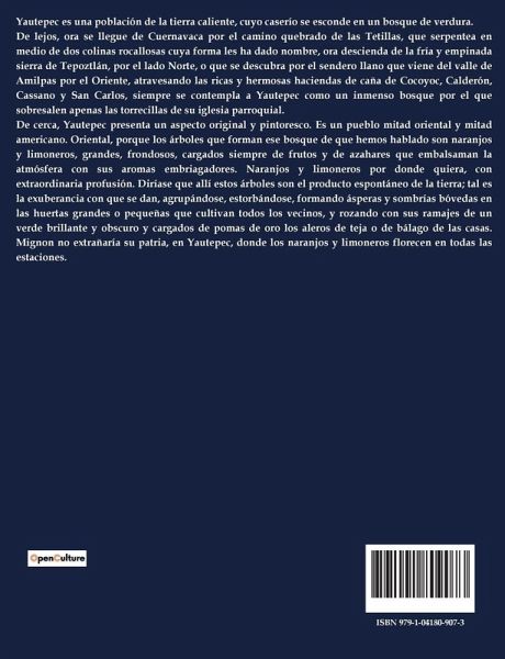 Yautepec es una población de la tierra caliente, cuyo caserío se esconde en un bosque de verdura. De lejos, ora se llegue de Cuernavaca por el camino quebrado de las Tetillas, que serpentea en medio de dos colinas rocallosas cuya forma les ha dado nombre, ora descienda de la fría y empinada sierra de Tepoztlán, por el lado Norte, o que se descubra por el sendero llano que viene del valle de Amilpas por el Oriente, atravesando las ricas y hermosas haciendas de caña de Cocoyoc, Calderón, Cassano y San Carlos, siempre se contempla a Yautepec como un inmenso bosque por el que sobresalen apenas las torrecillas de su iglesia parroquial. De cerca, Yautepec presenta un aspecto original y pintoresco. Es un pueblo mitad oriental y mitad americano. Oriental, porque los árboles que forman ese bosque de que hemos hablado son naranjos y limoneros, grandes, frondosos, cargados siempre de frutos y de azahares que embalsaman la atmósfera con sus aromas embriagadores. Naranjos y limoneros por donde quiera, con extraordinaria profusión. Diríase que allí estos árboles son el producto espontáneo de la tierra; tal es la exuberancia con que se dan, agrupándose, estorbándose, formando ásperas y sombrías bóvedas en las huertas grandes o pequeñas que cultivan todos los vecinos, y rozando con sus ramajes de un verde brillante y obscuro y cargados de pomas de oro los aleros de teja o de bálago de las casas. Mignon no extrañaría su patria, en Yautepec, donde los naranjos y limoneros florecen en todas las estaciones.