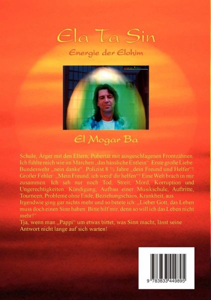 El Mogar Ba, 1955 in Hamburg geboren, arbeitet seit 1995 als Meister des Reiki, spiritueller Lehrer, Heiler und Schamane. 2004 bekam er den Auftrag der Elohim Ela Ta Sin den Menschen weiterzugeben, ihnen die Täuschungen zu nehmen, ihre Erdung in der Haradimension und darin die neue ätherische Licht-DNS zu öffnen, die die Menschheit für ihren Aufstieg braucht. Durch Seminare, Vorträge, Einzelsitzungen und die Ela Ta Sin Bücher, macht er den Menschen diese Energieform und das Wissen, über deren Anwendung und Wirkung, zugänglich. Weitere Informationen sind zu finden auf der Website: www.elatasin.de!