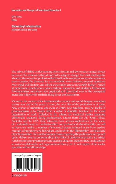 What are the future possibilities for the standing of professional practice as it faces growingly problematic markets for services, complex demands for managerial accountability and control, and problematic circumstances and expectations in its ethical and self-regulative governance? New sources of inspiration may be needed if professionalism is to be either a viable or desirable form for the social organisation of work in the coming years of potentially deep economic and social change. Set in the UK, South Africa, Australia and the USA, the empirical studies included elaborate problematic situations of professional practice concerning issues of identity and knowledge. The theoretical studies explore the notion of generic processes; elaborate the plurality of notions of professional practice; theorise the hybridisation witnessed in inter-professional and cross-disciplinary team work; and outline new theoretical departures relating to these. Elaborating professionalism also raisesimportant methodological issues relating to professionalism as ethical practice. The book offers valuable resources to enrich practice, and provokes thought and new ideas about professionalism.