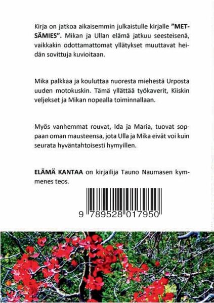 Kirja on jatkoa aikaisemmin julkaistulle kirjalle METSÄMIES. Mikan ja Ullan elämä jatkuu seesteisenä. Nuori motokuski Urpo yllättää Kiisken veljekset ja Mikan nopealla toiminnallaan. Myös vanhemmat rouvat, Ida ja Maria tuovat oman mausteensa elämään. ELÄMÄ KANTAA on kirjailija Tauno Naumasen kymmenen teos.