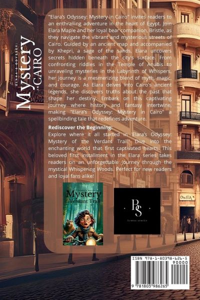 "Elara's Odyssey: Mystery in Cairo" is a captivating tale that transports readers to the heart of Egypt for an enthralling adventure. This novel is an extraordinary blend of myth, magic, and courage, as it follows the protagonist, Elara Maple, and her loyal bear companion, Bristle, through the vibrant and mysterious streets of Cairo. With an ancient map in hand, Elara, accompanied by the wise Khepri, a sage of the sands, dives deep into the city's ancient legends and uncovers truths that have long been buried beneath its bustling surface. This story masterfully intertwines history and fantasy, creating a spellbinding experience that redefines adventure. Readers are taken on a mesmerizing journey, confronting riddles in the Temple of Anubis and unraveling mysteries in the enigmatic Labyrinth of Whispers. Elara's courage and determination lead her to confront the past, shaping her destiny in ways she never imagined. "Elara's Odyssey: Mystery in Cairo" is not only an adventure story but also a deep exploration of Egyptian culture and mythology. The narrative is rich with descriptions of Cairo's historical landmarks, its colorful bazaars, and the vast, sandy dunes of the Egyptian desert. It's a tale that pays homage to the enduring legacy of ancient Egyptian civilization, bringing to life the myths and legends that have captivated humanity for centuries. Ideal for fans of fantasy and historical fiction, this book promises to be a hit among those who love strong female protagonists, rich world-building, and stories that seamlessly blend reality with the supernatural. It's a journey of self-discovery, friendship, and the power of legacy, perfect for young adults and the young at heart. The story's setting in Cairo allows for a unique exploration of Egyptian history and mythology, as readers follow Elara and her companions through real and imagined locales, each brimming with secrets and hidden truths. The novel seamlessly integrates elements of Egyptian lore, from the gods and goddesses of old to the mystical symbols and artifacts that have defined a culture. This integration of myth and reality sets "Elara's Odyssey: Mystery in Cairo" apart, providing a deeply immersive experience that is both educational and entertaining. The novel's pacing is expertly crafted, balancing moments of high-octane adventure with quieter, more introspective passages that allow for character development and plot progression. This balance ensures that readers are constantly engaged, whether they're exploring ancient ruins or uncovering the layers of Elara's personal journey. The themes of friendship, courage, and destiny are central to the story, resonating with readers from all backgrounds. Elara's relationship with her bear companion, Bristle, and her guide, Khepri, highlights the importance of loyalty and trust in the face of adversity. Their interactions are filled with warmth and humor, providing light-hearted moments in a story rich with suspense and mystery. "Elara's Odyssey: Mystery in Cairo" is also notable for its stunning descriptions and vivid imagery. The author's prose brings the setting to life, from the sun-drenched pyramids to the shadowy depths of ancient tombs. The attention to detail in describing Cairo's architecture, culture, and daily life adds an authentic touch to the fantasy elements, creating a world that is both fantastical and believable. In summary, this novel is a must-read for those who appreciate a blend of adventure, history, and mythology. It's a book that captures the essence of Egyptian culture while providing a thrilling narrative that is sure to engage and inspire. "Elara's Odyssey: Mystery in Cairo" is a journey not just through the sands of Egypt, but through the realms of imagination, where the past and present merge in the creation of a truly unforgettable story.