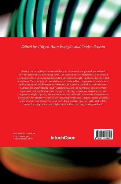 Elasticity is the ability of a material body to return to its original shape and size after the removal of a deforming force. The performance of materials can be defined according to their physical characteristics: stiffness, strength, hardness, ductility, and toughness. The elasticity of materials can be predicted by computational simulations and/or measured in laboratory experiments. This book is divided into two sections: ¿Simulations and Modeling¿ and ¿Characterization¿. In particular, seven relevant topics and their applications are considered: theory, simulation, characterization, composites, single crystals, nanoindentation, and dielectric elastomers. Examples are provided of the elasticity of materials including composites, single crystals, auxetics, and dielectric elastomers. The book provides important practical skills and will be useful for postgraduate and higher-level science and engineering students.