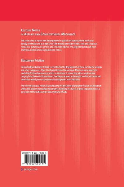 Modelling of Dry andWet Friction of Silica Filled Elastomers on Self-Affine Road Surfaces.- Micromechanics of Internal Friction of Filler Reinforced Elastomers.- Multi-Scale Approach for Frictional Contact of Elastomers on Rough Rigid Surfaces.- Thermal Effects and Dissipation in a Model of Rubber Phenomenology.- Finite Element Techniques for Rolling RubberWheels.- Simulation and Experimental Investigations of the Dynamic Interaction between Tyre Tread Block and Road.- Micro Texture Characterization and Prognosis of the Maximum Traction between Grosch Wheel and Asphalt Surfaces underWet Conditions.