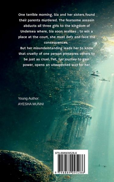 One terrible morning, Sia and her sisters found their parents murdered. The fearsome assasin abducts all three girls to the kingdom of Undersea where, Sia soon realises; to win a place at the court, she must defy and face the consequences. But her misunderstanding leads her to know that cruelty of one person pressures others to be just as cruel. Yet, her journey to gain power, opens an unexpected way for her.