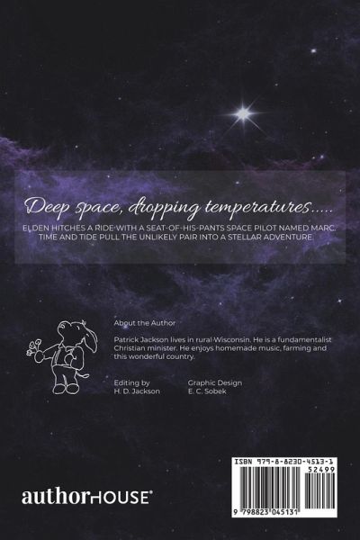Special Tactics officer Elden meets military pilot Marc Franklin. Both are recently retired from active duty-and in a spot! She has stowed away on a malfunctioning spaceship. Her technical skills could save them or at least delay the inevitable. Risk comes in the form of a futuristic empire, lawless raiders, and the broken devices of a broken world. Elden and Marc are running from the first, at risk from the second, and trying not to die from the third. Marc is an "outside thinker," but then, Elden isn't exactly predictable either. While she is modern and high-tech, she also craves the world of the soil and a plain, basic family. Elden and her friends depend on battle tactics which are both new and old. Marc and Elden share the journey through beautiful worlds... and by dangerous passageways. Ultimately, Elden's own planet must make a stand. Some history is woven into the plot. "A Twentieth-Century Glossary" (Patrick's potpourri essay on history) is included in the back of the book. The themes are upbeat. The time is recent. The author's conversations with veterans are visible in the storyline and characters of the book. Emphasis is on quiet sacrifice and costly investment. Eldenstar is not a "his" or "her" book. Read it together.
