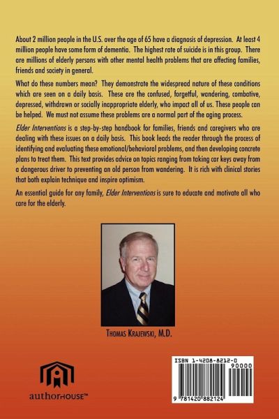 About 2 million people in the U.S. over the age of 65 have a diagnosis of depression. At least 4 million people have some form of dementia. The highest rate of suicide is in this group. There are millions of elderly persons with other mental health problems that are affecting families, friends and society in general. What do these numbers mean? They demonstrate the widespread nature of these conditions which are seen on a daily basis. These are the confused, forgetful, wandering, combative, depressed, withdrawn or socially inappropriate elderly, who impact all of us. These people can be helped. We must not assume these problems are a normal part of the aging process. Elder Interventions is a step-by-step handbook for families, friends and caregivers who are dealing with these issues on a daily basis. This book leads the reader through the process of identifying and evaluating these emotional/behavioral problems, and then developing concrete plans to treat them. This text provides advice on topics ranging from taking car keys away from a dangerous driver to preventing an old person from wandering. It is rich with clinical stories that both explain technique and inspire optimism. An essential guide for any family, Elder Interventions is sure to educate and motivate all who care for the elderly.
