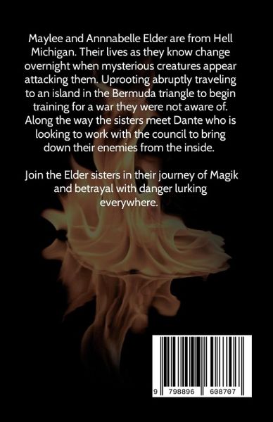 Maylee and Annabelle Elder are from Hell Michigan. Their lives as they know change overnight when mysterious creatures appear attacking them. Uprooting abruptly traveling to an island in the Bermuda triangle to begin training for a war they were not aware of. Along the way the sisters meet Dante who is looking to work with the council to bring down their enemies from the inside. Join the Elder sisters in their journey of magik and betrayal with danger lurking everywhere.