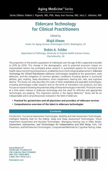 "This multiauthored book describes how technology works for older persons and how clinicians can use technology to help older persons. ... This is a broad charge and the book highlights these areas nicely. The ... audience to be 'eldercare practitioners,' students of medicine, nursing, social studies, technology, engineers and designers. ... This is a useful book that covers a wide area. ... provides a vista of the future in which advanced technology will help older persons and their caregivers." (David O. Staats, Doody's Review Service, June, 2008)