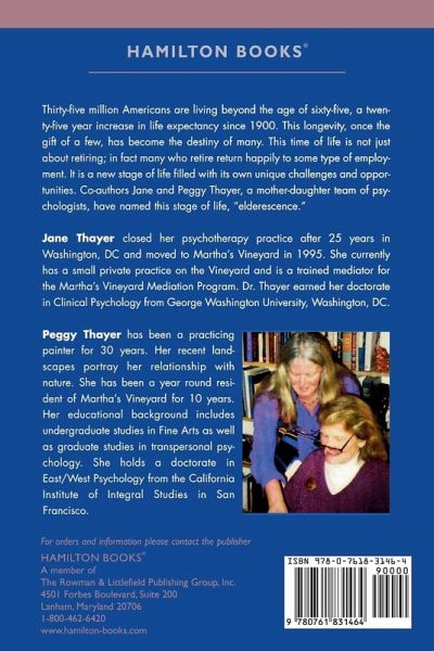Thirty-five million Americans are living beyond the age of sixty-five, a twenty-five year increase in life expectancy since 1900. This longevity, once the gift of a few, has become the destiny of many. This time of life is not just about retiring; in fact many who retire return happily to some type of employment. It is a new stage of life filled with its own unique challenges and opportunities. Co-authors Jane Thayer and Peggy Thayer, a mother-daughter team of psychologists, have named this stage of life, 'elderescence.'